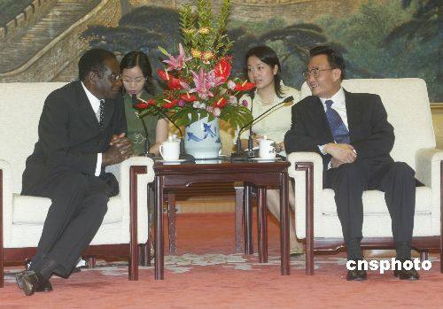 圖:吳邦國會(huì)見津巴布韋總統(tǒng)穆加貝