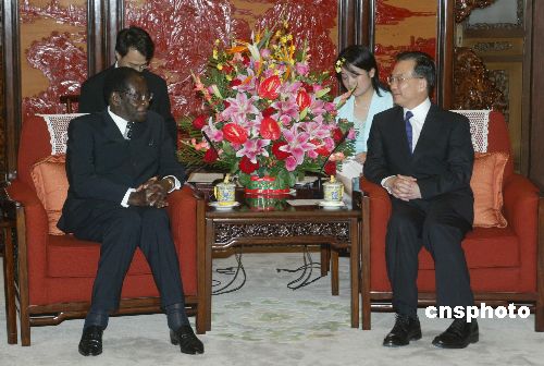 七月二十七日,中國國務院總理溫家寶在北京中南海會見來訪的津巴布韋總統穆加貝。作者:史利