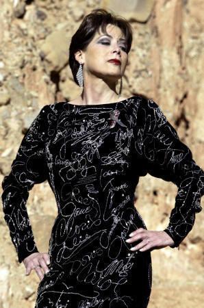 玻利維亞服裝設計師帕提諾(Beatriz Canedo Patino)7月26日在拉巴斯親自穿著作品“好萊塢涂鴉裝”展示,衣服上有她與全球近400位名女人的簽名。這件禮服在24年前制作,用來呼吁各國女性團結對抗愛滋病。衣服上用白金與水晶珠煉繡著穿過這件衣服的女士姓名,包括德蕾莎修女、小野洋子與凱薩琳赫本(Katharine Hepburn)等。帕提諾是最后一個在這件衣服上加上簽名的人。她因為愛用Alpaca羊毛,自稱Alpaca皇后。這件衣服將在最后一次全球巡回展后拍賣,以對愛滋病防治做出最后的貢獻。(來源:路透/David Mercado)