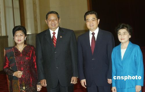 胡錦濤高度評價中印尼關系。他說,我們贊賞印尼政府堅持一個中國政策,一貫支持印尼打擊分裂勢力和恐怖勢力,維護國家團結穩定,促進經濟發展。胡錦濤指出,中印尼建立戰略伙伴關系,是兩國關系中具有里程碑意義的大事,希望雙方以建交五十五周年為新起點,扎實推進各領域互利合作,不斷充實兩國戰略伙伴關系的內涵。