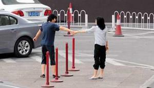 王菲扎著馬尾,穿一件黑色T恤和一條時尚的乞丐牛仔褲,戴一副超大號的黑色墨鏡,李亞鵬穿米黃色短袖襯衣、休閑褲。從兩人下車一直到在結(jié)婚登記處辦完手續(xù),李亞偉不離左右,而穿淺藍(lán)色T恤的男士則用DV機進行跟拍。