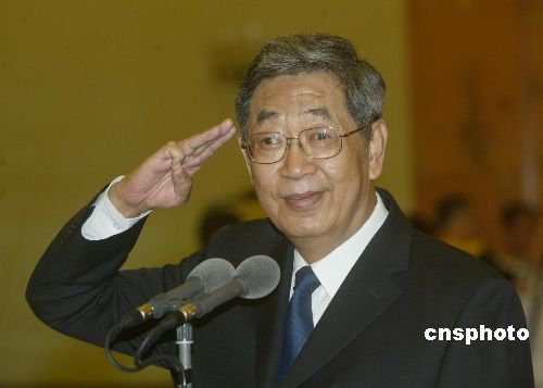 七月二十九日,中國全國人大常委會副委員長許嘉璐在北京人民大會堂向港澳同親同根萬里行交流團全體成員敬禮。作者:史利