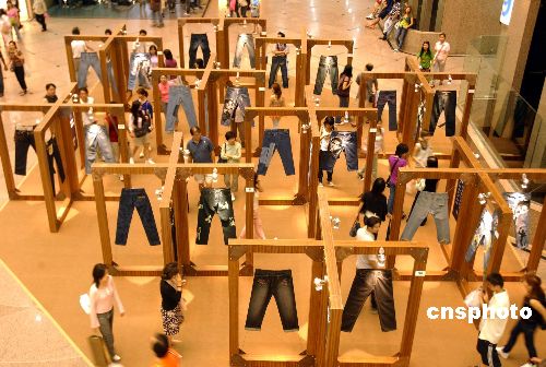 7月30日,正在香港時代廣場舉行Jeans Fever Exhibition牛仔褲展覽,吸引不少市民觀賞。香港創作人曾偉文在多個世界名牌限量版牛仔褲上繪上名人肖像,使時裝與藝術融為一體。作者:洪少葵