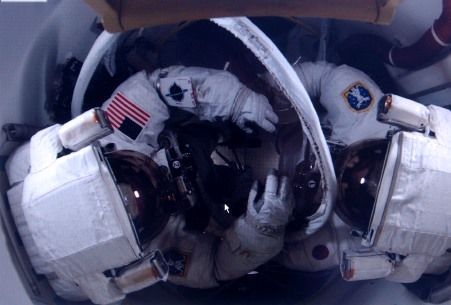 兩名宇航員完成第二次太空行走任務,回到艙位的奇特形。 作者 NASA
