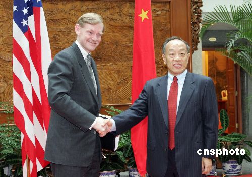 中國外交部長李肇星八月二日在北京會見來訪的美國常務副國務卿佐利克。作者:毛建軍