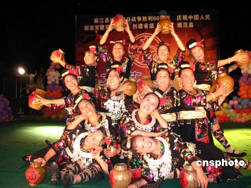 8月1日,在貴州黔東南苗疆腹地——麻江縣,苗族同胞用具有民族特色的舞蹈“醉苗鄉”,與駐地官兵共慶建軍78周年。作者:韋剛