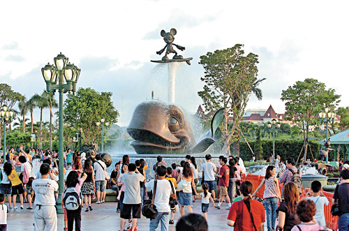 若論到最受歡迎,始終是迎樂路的米奇鯨魚噴水池,米奇踏著噴水鯨魚的水柱,高高低低在滑浪,引得大人小孩童心盡現。市民表示,噴水池很特別,約每15分鐘便奏起交響樂,“得意”的鯨魚又會噴出高高的水柱,米奇站于上面,十分有趣。