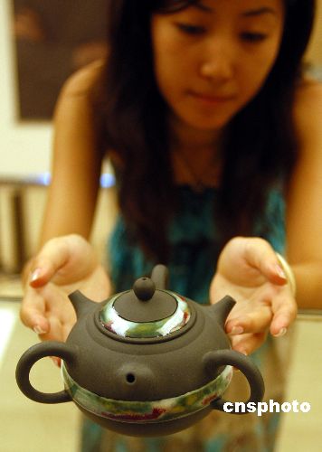 “古藝新生·美人醉再現(xiàn)”----臺(tái)灣知名陶藝家陳佐導(dǎo)先生精品陶瓷藝術(shù)展將于八月九日至十七日在北京中國(guó)美術(shù)館舉辦。此次展出的百件陶瓷精品均為陳先生終其一生研究的成果。圖為展出的一款造型獨(dú)特、寓意“兩岸三通”的茶壺。作者:張宇