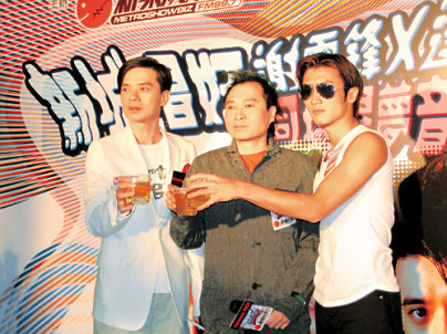 圖:劉以達、霆鋒與明哥舉杯共飲,預祝成功(大公網圖)