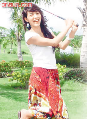 低V打高爾夫球狼狽 官恩娜護胸防走光搶鏡(圖)