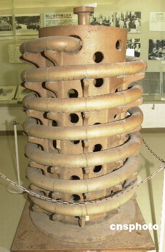 圖為島上資料館內展示的當年用于制造芥子氣和糜爛性毒瓦斯等化武液化氣的冷卻裝置。 作者:王健