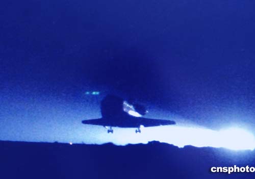 真是“起飛時(shí)難降也難”,美國(guó)愛(ài)德華茲空軍基地沙漠跑道九日的黎明靜悄悄,當(dāng)“發(fā)現(xiàn)號(hào)”航天飛機(jī)沖破大氣層的烈熾時(shí),舉世矚目----但它終于在夜幕中閃著亮光,英雄般身負(fù)傷痕呼嘯而降......掌聲響起來(lái)。