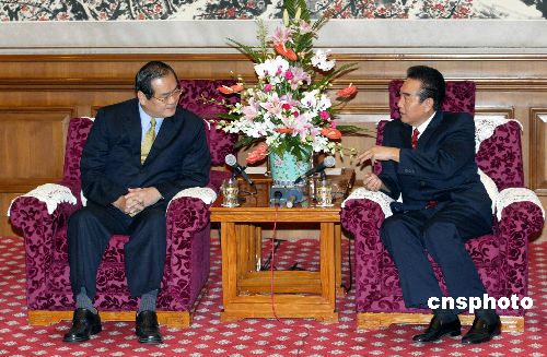 八月十六日,國務院臺灣事務辦公室主任陳云林在北京會見由國民黨中央政策會執行長曾永權率領的“兩岸客貨運包機促進訪問團”一行。作者:廖文靜