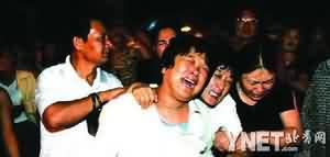 20時25分,高秀敏的遺體被家人抬上了靈車,黃色單子上“流芳千古”的字樣分外地讓人感傷。漆黑的小道,靈車緩緩而行……幾名年輕的女孩拼盡了氣力,低著頭往人群中擠,引起了人群的騷動和指責。“求求你,讓我們進去吧,我們是她的學生,要看老師最后一眼”,一個小女孩帶著哭腔的話讓人群向后閃開,幾個女孩扶著靈車淚流滿面,其中一個還雙手合十,低聲為已逝的恩師祈福。