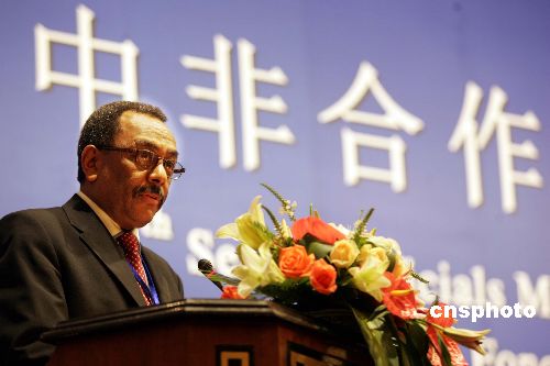8月22日,為期兩天的中非合作論壇第四屆高官會在北京開幕,來自中國和非洲46個國家的代表、6個非洲地區組織的觀察員以及非洲駐華使節出席了開幕式。中非合作論壇是中國和非洲于2000年共同創立的集體對話與合作機制,已分別舉辦了兩屆部長級會議。圖為論壇共同主席國、埃塞俄比亞政府論壇特使海爾基洛斯·格塞塞在開幕式上致辭。作者:武仲林