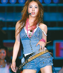 中新網(wǎng)8月22日電 據(jù)光華日?qǐng)?bào)報(bào)道,蔡依林(Jolin)和徐若瑄(Vivian)兩位性感女神,前晚在臺(tái)灣舉行的《臺(tái)北流行音樂(lè)節(jié)》上來(lái)個(gè)正面交鋒斗性感,擔(dān)任壓軸演出的Jolin,專程花了10萬(wàn)臺(tái)幣置裝,她穿上牛仔背心襯黑白短裙出現(xiàn),當(dāng)唱到高潮時(shí),Jolin更當(dāng)眾脫去短裙,原來(lái)她內(nèi)里穿了一條超短牛仔熱褲,再襯上高跟鞋勁歌熱舞一番,看得臺(tái)下觀眾熱血沸騰。至于Vivian則以黑色短裙出現(xiàn),露出一截小蠻腰,原本她亦襯上一對(duì)高鞋,但由于彩排時(shí)誤踩入舞臺(tái)的隙縫中,結(jié)果正式演出時(shí)Vivian只好改穿布鞋,鋒芒被Jolin搶走。