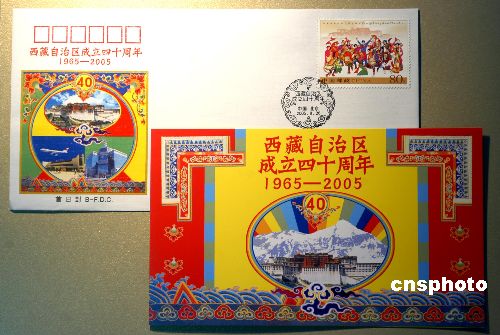圖:“西藏自治區成立四十周年”紀念郵品發行
