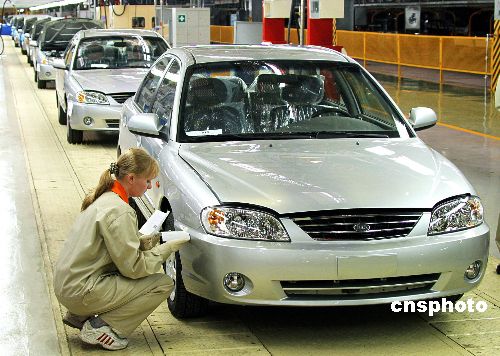 8月22日,韓國(guó)起亞在俄羅斯的一處工廠內(nèi),工人正在做產(chǎn)品檢驗(yàn)。韓國(guó)起亞Spectra汽車(chē)已經(jīng)開(kāi)始在俄羅斯批量生產(chǎn)。隨著俄羅斯經(jīng)濟(jì)的逐步提升,汽車(chē)需求量也大幅增加,全球各大汽車(chē)廠商都在加緊進(jìn)軍俄羅斯,競(jìng)爭(zhēng)日益激烈。作者:Ic/cnsphoto