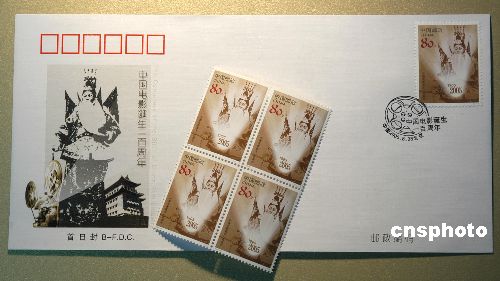圖:中國電影誕辰一百周年紀念郵品發(fā)行