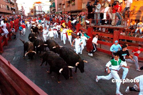 8月26日,第二屆馬德里圣·塞巴斯帝安奔牛節(jié)開幕。大約有2200名愛好者參加了這一活動.他們在兇猛的公牛之前四散奔逃,以此尋求刺激。有6人在活動中受了輕傷4人被送往當(dāng)?shù)氐尼t(yī)院。據(jù)悉,該活動將持續(xù)到8月31日。作者:Ic/cnsphoto