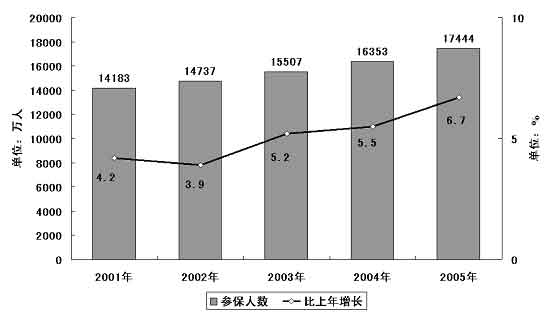 圖表九 “十五”期間基本養(yǎng)老保險參保人數(shù)及其增長情況