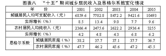 ━━城鄉(xiāng)居民收入穩(wěn)定增長。城鎮(zhèn)居民人均可支配收入和農(nóng)村居民人均純收入分別實際增長6%和5%。主要考慮是:隨著經(jīng)濟(jì)較快增長,企業(yè)效益繼續(xù)提高,國家促進(jìn)農(nóng)民增收、加強(qiáng)社會保障和扶貧工作等各項措施逐步落實,城鄉(xiāng)居民收入將持續(xù)增加;但提高居民特別是農(nóng)民收入水平也面臨許多困難和制約因素。在城鄉(xiāng)居民收入穩(wěn)定增長的基礎(chǔ)上,消費需求保持平穩(wěn)較快增長,全社會消費品零售總額預(yù)期增長12%。