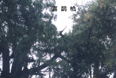 站在前殿前臺上,可看到西南方向與西戲樓緊靠的那棵古柏,古柏上部樹枝空間有一根干枝,干枝頂部象只喜鵲,頭朝南,尾巴朝北翹起,形態生動逼真,因而為此柏取名為“喜鵲登枝柏”。