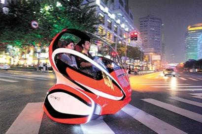 昨天,上汽集團(tuán)新型概念車EN—V駛上了熱鬧的淮海路,引來(lái)市民們的觀看。
