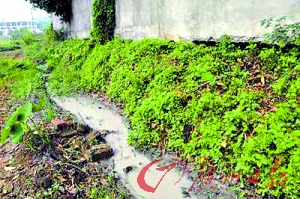 記者沿著發臭的小溪渠尋找污染源,發現田園間幾條水溝里的水都是前面工廠排出的污水,并且還散發著刺鼻的臭味,水呈奶白色(見圖)。
