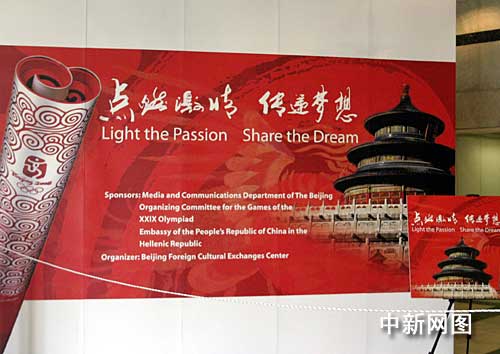 當地時間3月29日,“點燃激情、傳遞夢想”北京奧運會火炬傳遞主題圖片展覽,在希臘奧委會辦公樓一層大廳舉辦。 中新社記者 王歡