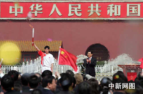 胡錦濤宣布,北京2008年奧運(yùn)會(huì)火炬接力開始。