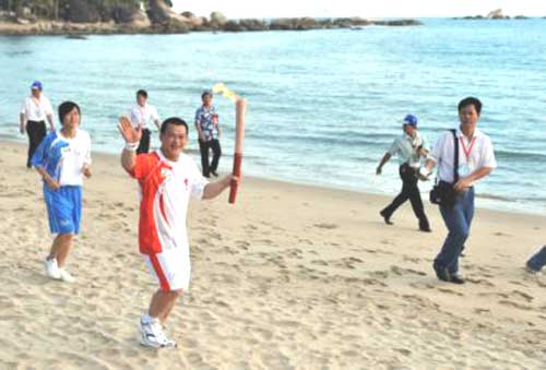 綜合新華社電奧運(yùn)圣火在三亞的傳遞路線被北京奧組委認(rèn)定“極具特色”。為體現(xiàn)三亞的椰林、海灘風(fēng)光,三亞的火炬?zhèn)鬟f方式除了長跑外,還采用了沙灘跑步、三人自行車等特殊傳遞方式。