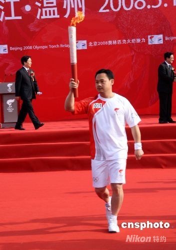 圖:圣火溫州傳遞 占旭剛起跑第一棒