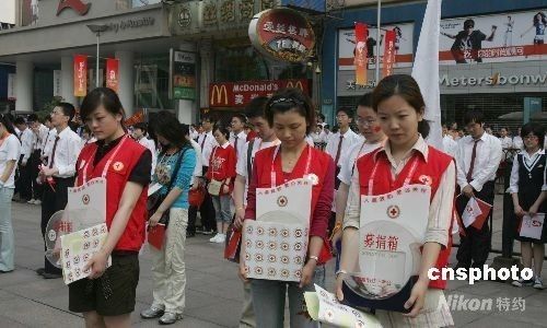 五月二十三日,奧運火炬在“中華商業第一街”上海南京路傳遞。沿途歡迎圣火的市民情系四川災區,為死難同胞默哀。 中新社發 潘索菲 攝
