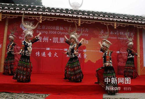 中新網6月13日電 北京奧運圣火今早8時左右開始了貴州黔東南苗族侗族自治州首府凱里的傳遞。