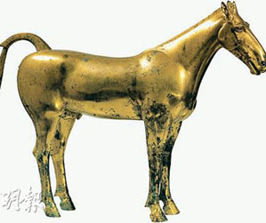 這次展覽命名為“天馬神駿——中國馬的藝術(shù)和文化”,展出各類文物如兵馬俑、銅鐵雕塑和壁畫等,其中30多件展品屬國家一級保護(hù)文物,價值不菲。其中如漢代鎏金銅馬,于1981年在陜西興平市漢武帝茂陵東側(cè)出土,據(jù)稱就是以歷史上著名的汗血寶馬為原型。