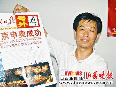 陳國慶說,他的奧運系列收藏中,2001年7月13日出版的《人民日報》號外是重點,他共有5張,一張留底,一張送給了何振梁做紀念,一張上有何振梁、鄧亞萍等人士的簽名,一張就是薩馬蘭奇的簽名,還有一張正在爭取取得國際奧委會現任主席羅格的簽名。(記者 胡增春 特約記者 柳非)