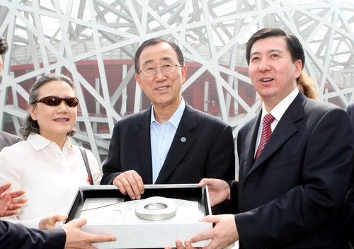 當日上午,潘基文一行參觀了國家體育場“鳥巢”及北京2008工程展示中心。潘基文在結束參觀時對記者表示,8月8日將在“鳥巢”揭幕的北京奧運會將成為各國運動員和人民相互了解,和諧共融的一屆盛會。他說,北京奧運會的場館和相關基礎的建設非常出色,組織工作也有條不紊,這必將使北京奧運會成為最出色的一屆奧運會。