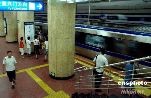 7月14日,一列地鐵駛?cè)氡本┑罔F阜成門站。據(jù)北京市交通委相關(guān)負(fù)責(zé)人介紹,北京地鐵運(yùn)營部門考慮到奧運(yùn)會(huì)開閉幕式結(jié)束時(shí)間較晚、客流量加大的實(shí)際情況,地鐵將采取24小時(shí)運(yùn)營。地鐵10號線一期、奧運(yùn)支線、機(jī)場線已完成工程建設(shè)和設(shè)備調(diào)試,即將開通試運(yùn)營。預(yù)計(jì)開通試運(yùn)營時(shí)間將定在7月20日之前,三條新線會(huì)在一天同時(shí)開通試運(yùn)營。中新社發(fā) 楊慧峰 攝