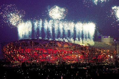 中新網(wǎng)北京7月17日電 綜合報(bào)道,16日晚,北京奧運(yùn)會(huì)開(kāi)幕式在國(guó)家體育場(chǎng)“鳥(niǎo)巢”舉行了帶妝彩排。“鳥(niǎo)巢”夜景照明系統(tǒng)首次全亮燈,并首次在“鳥(niǎo)巢”上空燃放禮花。