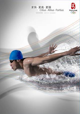 以運動員富有張力和動感的形象,與帶有水墨意味的核心圖形“祥云”為背景,體現(xiàn)出奧運會和諧、吉祥的氛圍。祥云的翻轉起伏與水墨的變化,表現(xiàn)出運動員為了實現(xiàn)夢想而努力拼搏的奧林匹克精神。