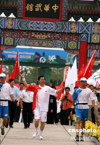 7月19日,北京奧運火炬在大連傳遞,大連市市長夏德仁擔任最后一棒火炬手。 中新社發 周兆軍 攝