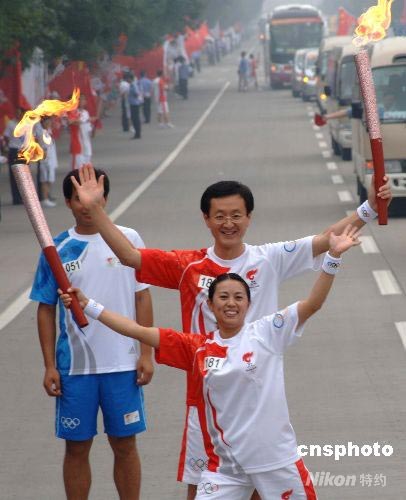 圖:奧運(yùn)火炬在山東泰安傳遞