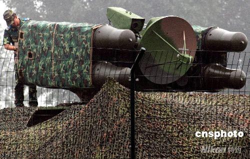 7月22日,2008北京奧運會臨近,北京警方全方位進行軍事部署嚴防恐怖突發事件發生。圖為在北京奧運會主場館附近,軍人在不停檢查導彈設施。中新社發 錢興強 攝