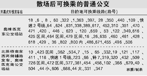 據(jù)介紹,開幕式當(dāng)天,從北京南站、動物園、四惠等地發(fā)車,開通28條奧運會開幕式公交臨時專線,一站直達(dá)奧林匹克公園東、南公交場站,中途不設(shè)站。