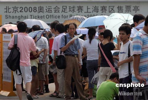 7月25日,北京奧運(yùn)會(huì)足球比賽上海賽區(qū)門票開始發(fā)售,眾多球迷通宵排隊(duì)等候爭(zhēng)購?qiáng)W運(yùn)門票。據(jù)悉,此次發(fā)售的是上海賽區(qū)所剩余的164737張門票,其中包括男足第3、4名決賽在內(nèi)的9個(gè)場(chǎng)次的門票。價(jià)格最便宜的小組賽門票只需要40元,最高為男足第3、4名決賽A票,價(jià)格為800元。 中新社發(fā) 湯彥俊 攝