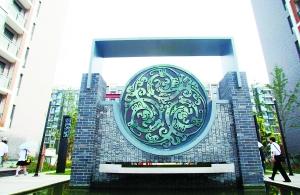 我都快顧不上找宿舍了。看那邊的影壁墻簡直就是藝術(shù)雕塑,上面或者是漢白玉的鳳凰,或者是麒麟。有的則是青銅造的圓盤,上面的圖案仿佛是動物結(jié)合體,也許就是一只鳳凰,在祥云中飛舞。草坪上,有許多不規(guī)則的木箱裝飾物,上面是用古文字設(shè)計出的運(yùn)動項目造型。石獅子隨處可見,每一個石獅子記錄著一屆奧運(yùn)會。看著紅色木頭座椅,走在藝術(shù)長廊,簡直不知道這里是奧運(yùn)村,還是頤和園。