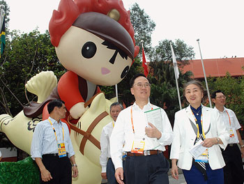 行政長官曾蔭權與香港奧運村及殘奧村村長梁愛詩巡視香港奧運村的設施。(圖片來源:香港特區政府網站)
