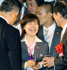 氣氛略顯莊重的成立儀式之后還舉行了輕松歡快的壯行會。因為中途參加的日本首相福田康夫遲到,手握麥克風的棒球隊主帥星野仙一(61歲)臨時救場致辭稱,“我剛才想希望小愛(接旗時)不要倒下,可鈴木一點都沒有幫忙”,引起會場一陣笑聲。