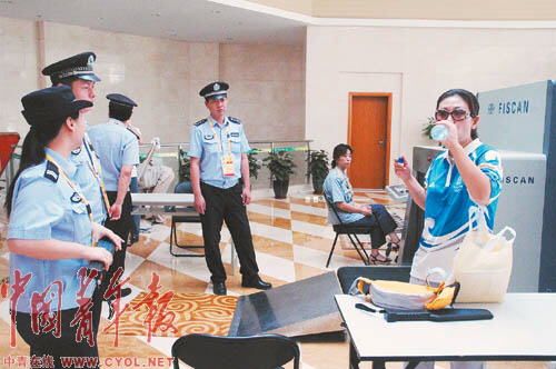 由于目前上海體育場(chǎng)實(shí)施全封閉管理,必須憑有效證件才能進(jìn)入封閉區(qū)域,記者佩戴著奧運(yùn)會(huì)注冊(cè)記者證進(jìn)入上海體育場(chǎng)。在工作人員的安檢通道:首先,要在專門的驗(yàn)證機(jī)器上檢查證件的真實(shí)性;接著,從兩根黑色柱子中間穿過(guò),而這兩根很不起眼的黑色柱子卻是非常厲害的核生化檢測(cè)儀器,任何一點(diǎn)放射性物質(zhì)都可以檢測(cè)出來(lái);隨后,就會(huì)通過(guò)和機(jī)場(chǎng)相同的安檢門,如果身上攜帶了金屬物品,儀器就會(huì)發(fā)出警報(bào),工作人員就會(huì)手持安全檢查儀進(jìn)行進(jìn)一步檢查,而行李則須從X光物品檢查儀通過(guò)。而更嚴(yán)格的是,進(jìn)入奧運(yùn)場(chǎng)所的人員攜帶的手機(jī)、手提電腦都必須進(jìn)行開機(jī)測(cè)試,攜帶的飲料則必須開瓶試飲一口,至于打火機(jī)則不得帶入。